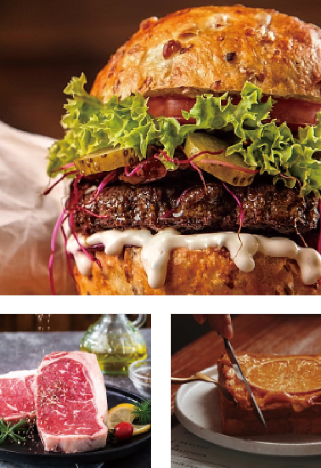精选安格斯牛肉,摔打断筋。整肉剁碎,加入洋葱末,玉米淀粉,够味肉饼。牛肉腌料腌制低温煎熟。5序2腌出好味