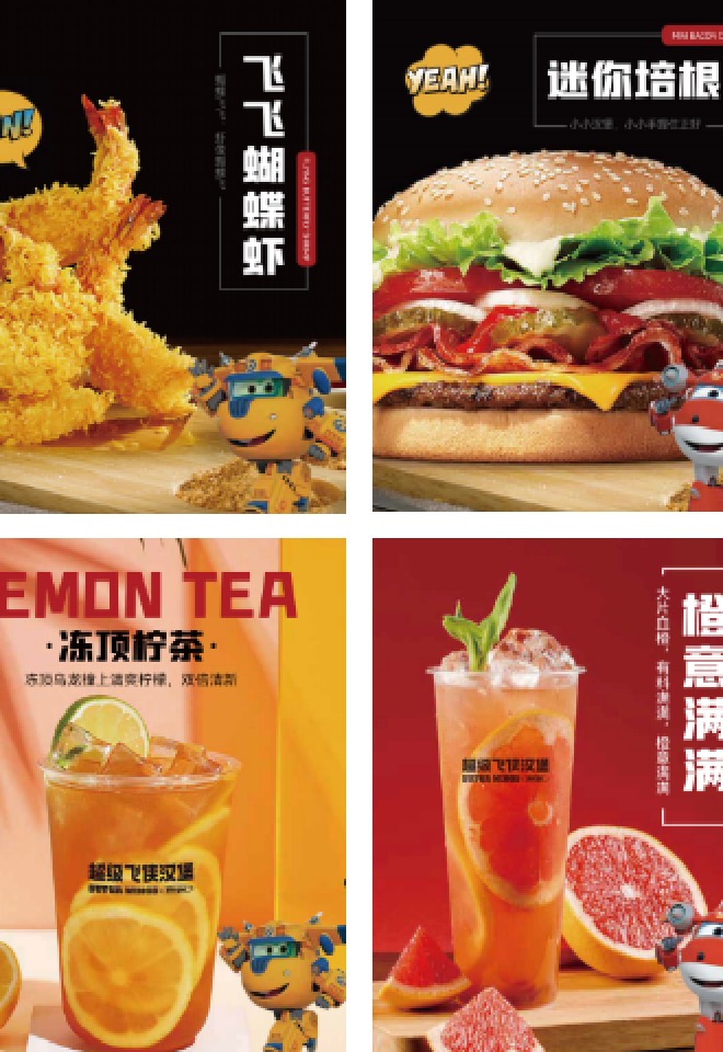 手工招牌牛肉堡;飞飞蝴蝶虾;迷你培根堡;爵士五彩鸡排;台式卤肉饭;冻顶柠茶;橙意满满