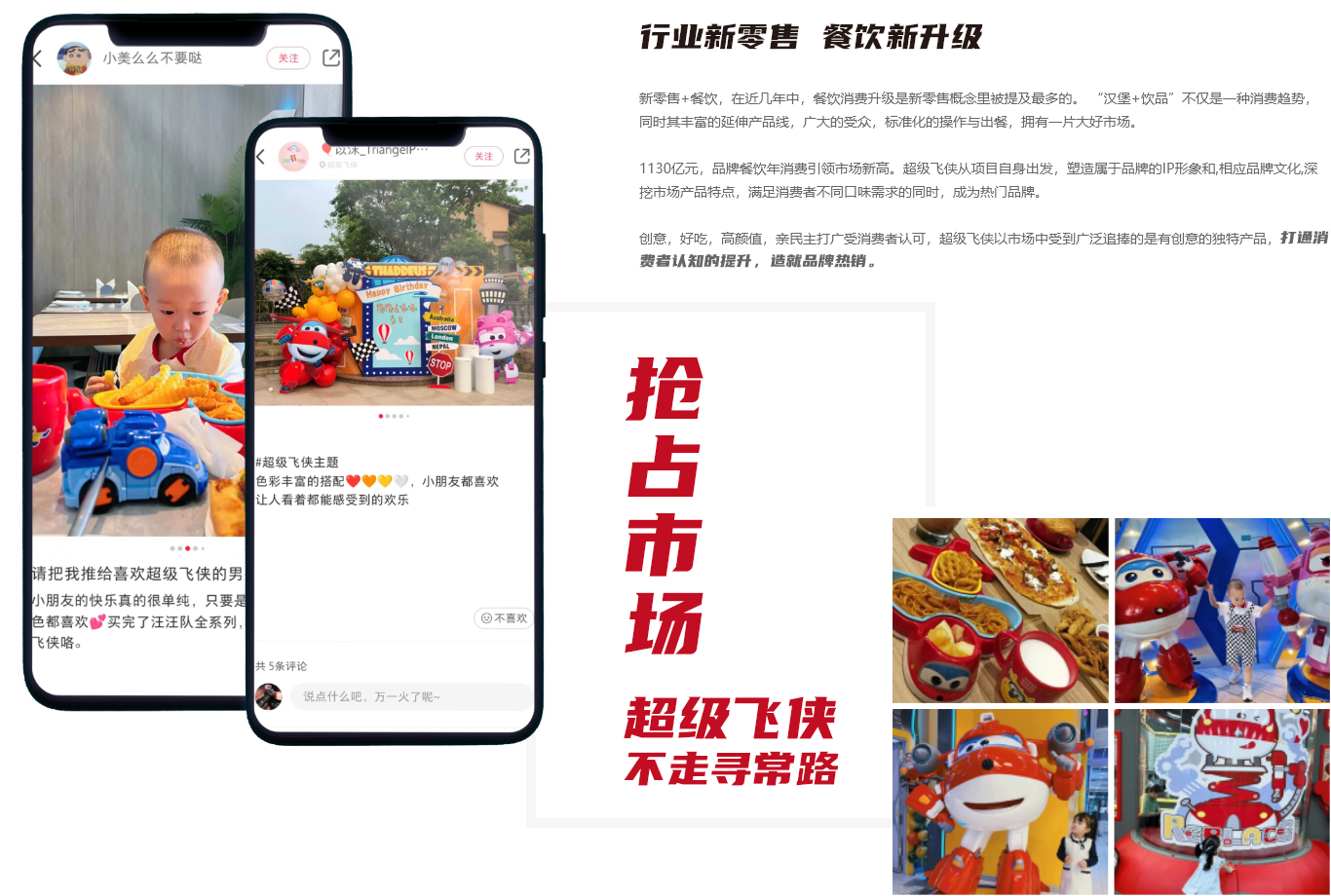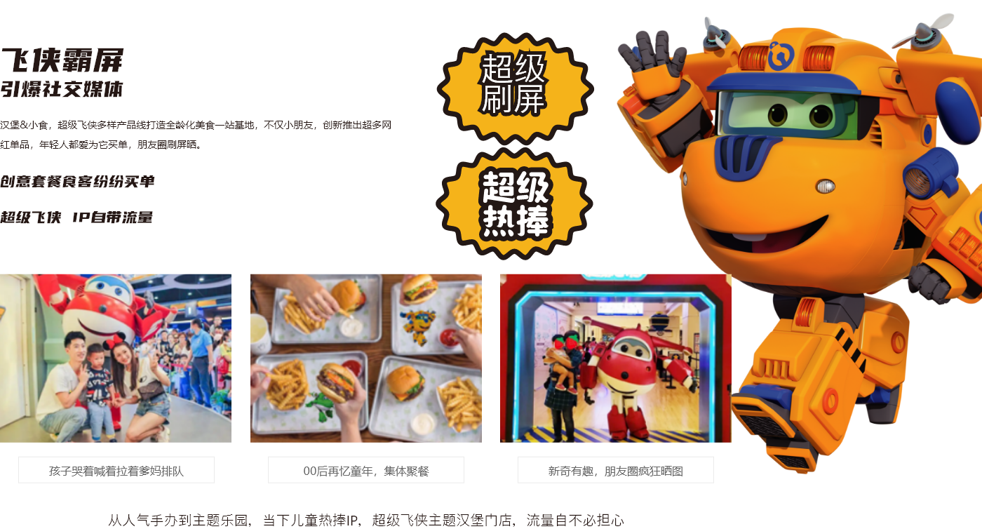 定制品牌IP,打造超级飞侠主题,结合诸多手办,吸引90-00后关注,市场更认可,流量更稳定。人气引力,门店有活力。